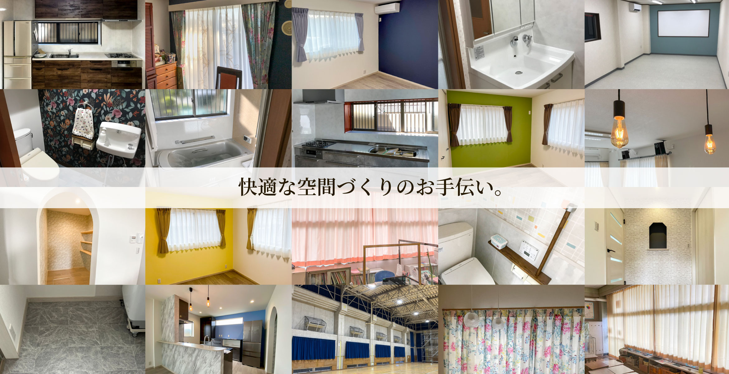 内装工事はもちろん、下地補修やフローリングなどの木工事からカーテンなどの室内装飾品の取付まで当店で全て行っている為、細部までの丁寧な施工を心がけ、よりよい商品を少しでもお安く提供出来るようなシステムで日々取り組んでおります。